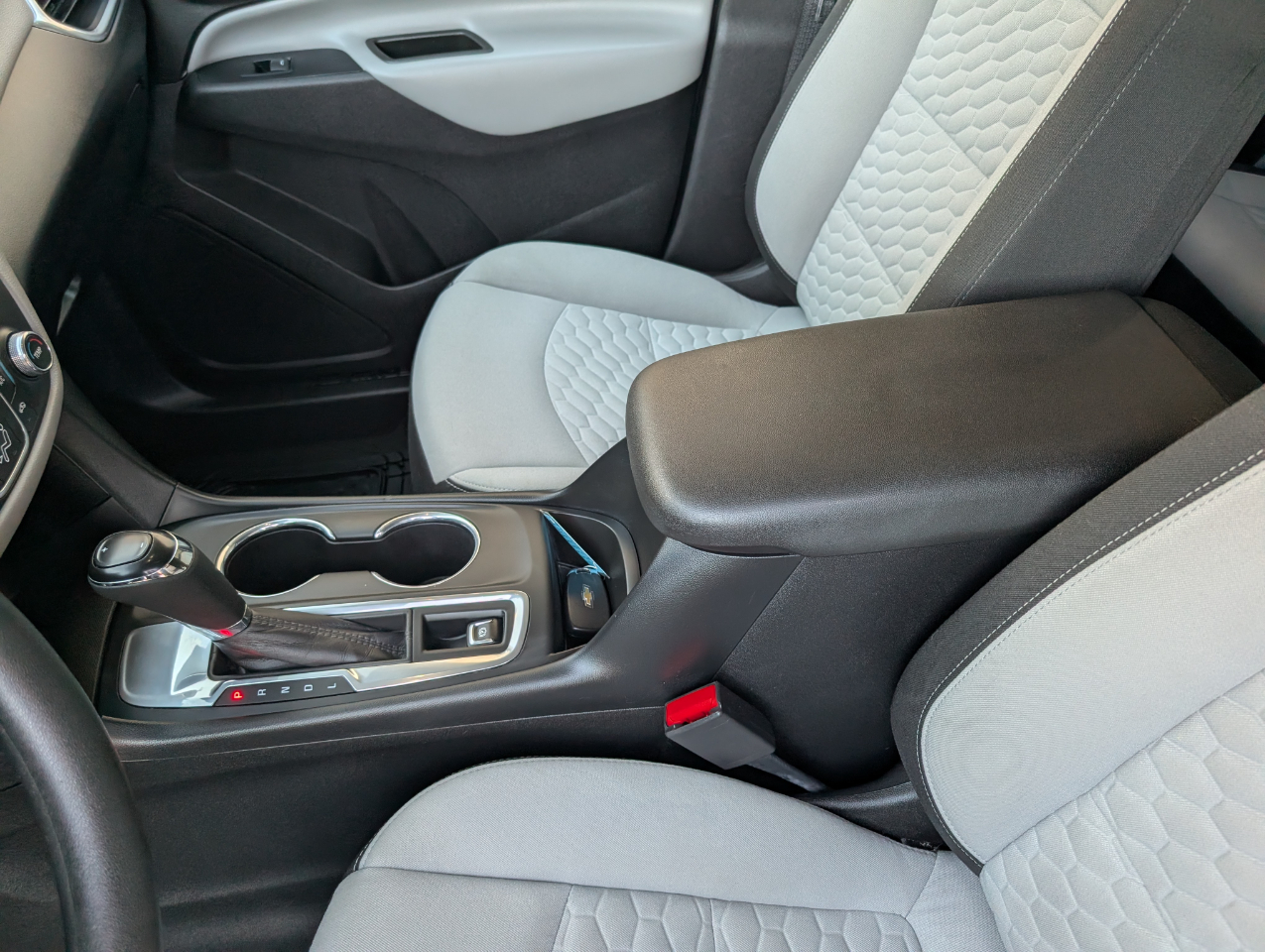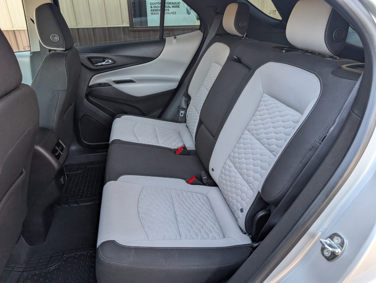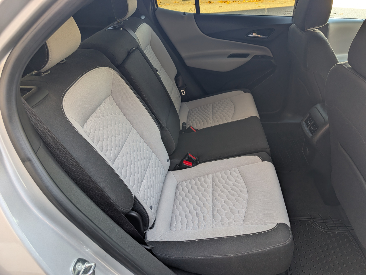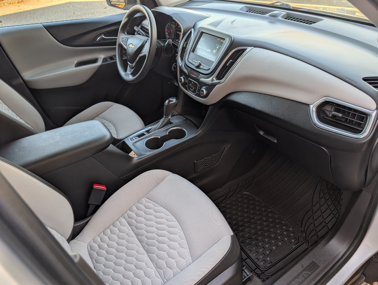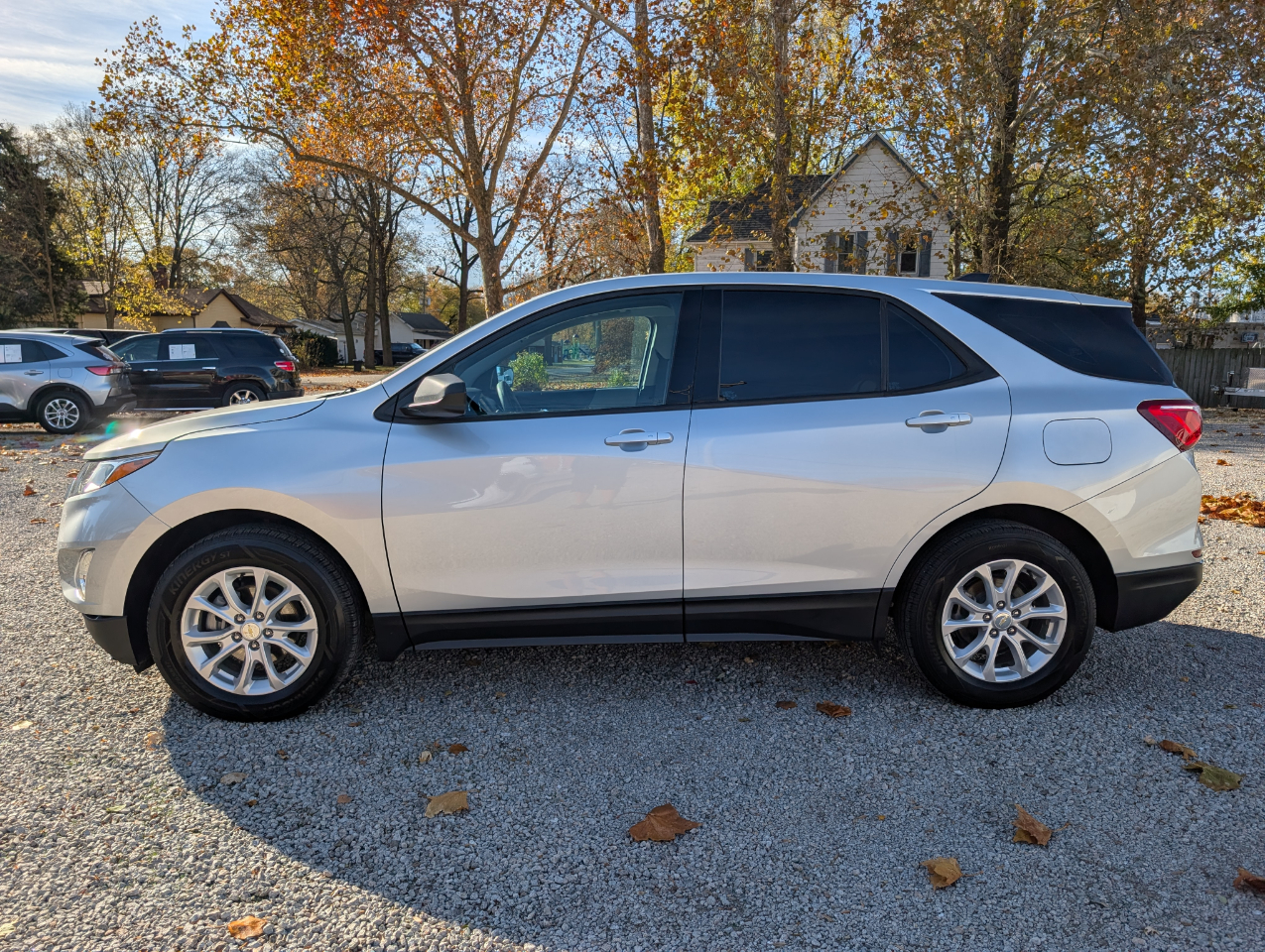 The 2018 Chevrolet Equinox LS is a compact SUV with a standard 1.5L turbocharged engine, six-speed automatic transmission, and front-wheel drive. Key features include a Chevrolet MyLink infotainment system with a 7-inch color touchscreen, Bluetooth, and Apple CarPlay/Android Auto compatibility. It offers seating for five, a backup camera, and a split-folding rear seat for cargo versatility.