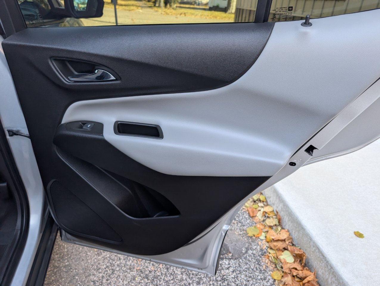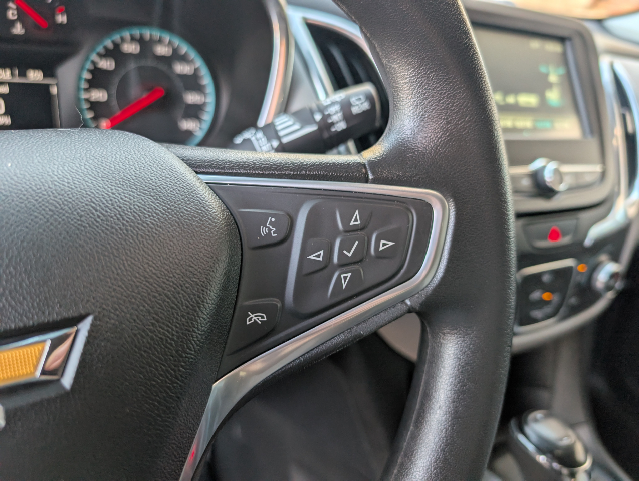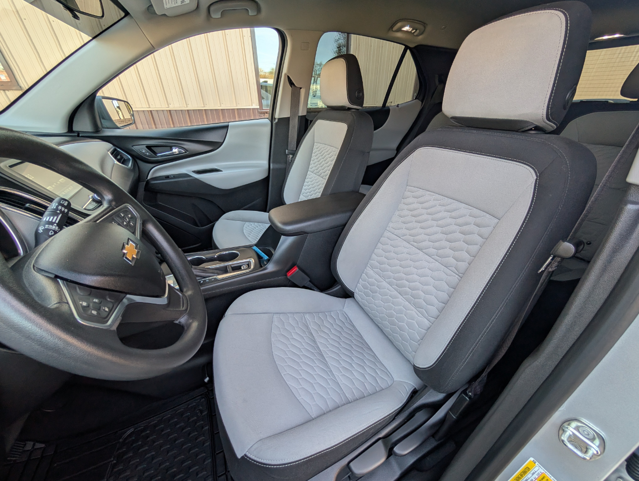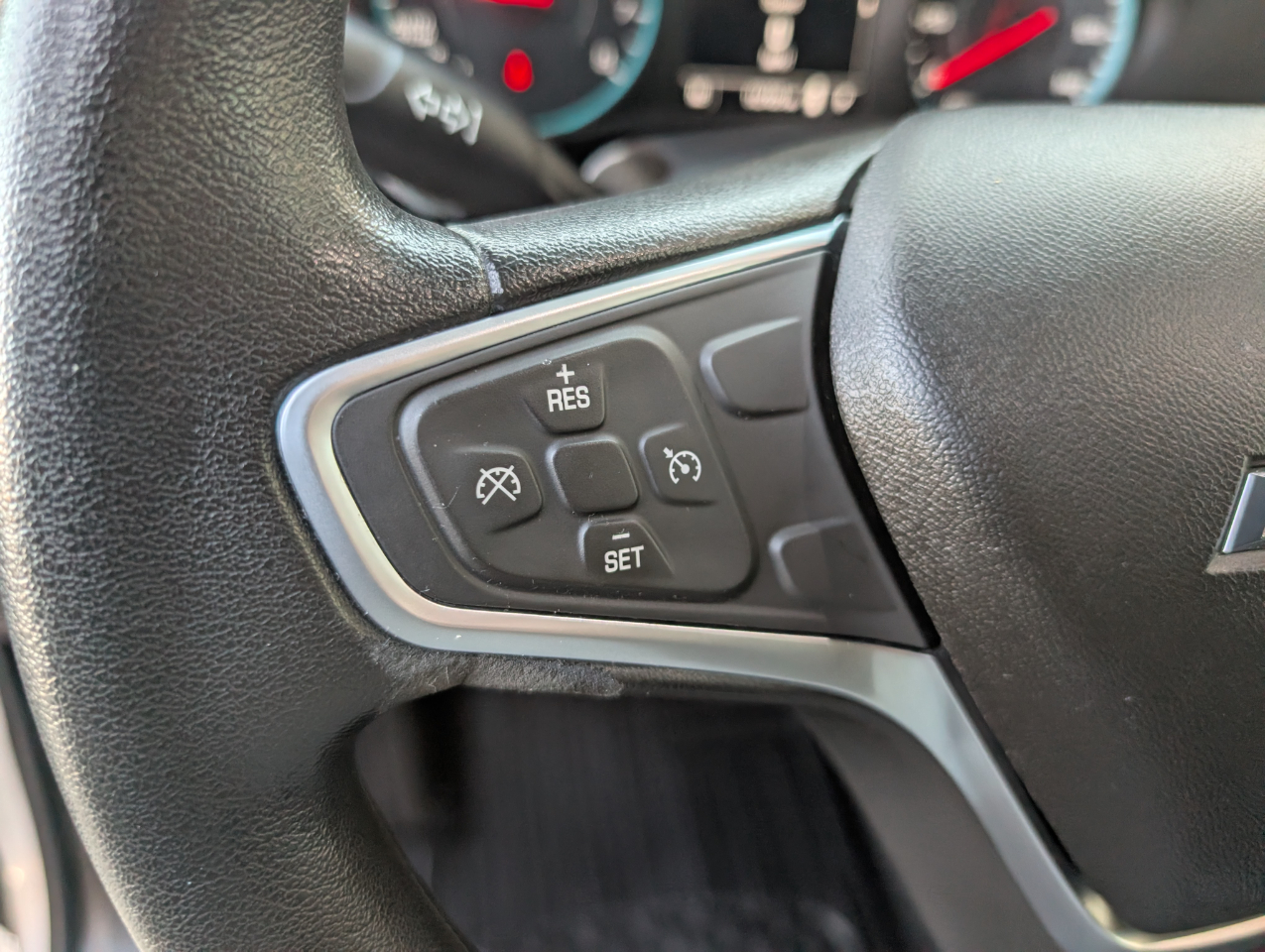The 2018 Chevrolet Equinox LS is a compact SUV with a standard 1.5L turbocharged engine, six-speed automatic transmission, and front-wheel drive. Key features include a Chevrolet MyLink infotainment system with a 7-inch color touchscreen, Bluetooth, and Apple CarPlay/Android Auto compatibility. It offers seating for five, a backup camera, and a split-folding rear seat for cargo versatility.