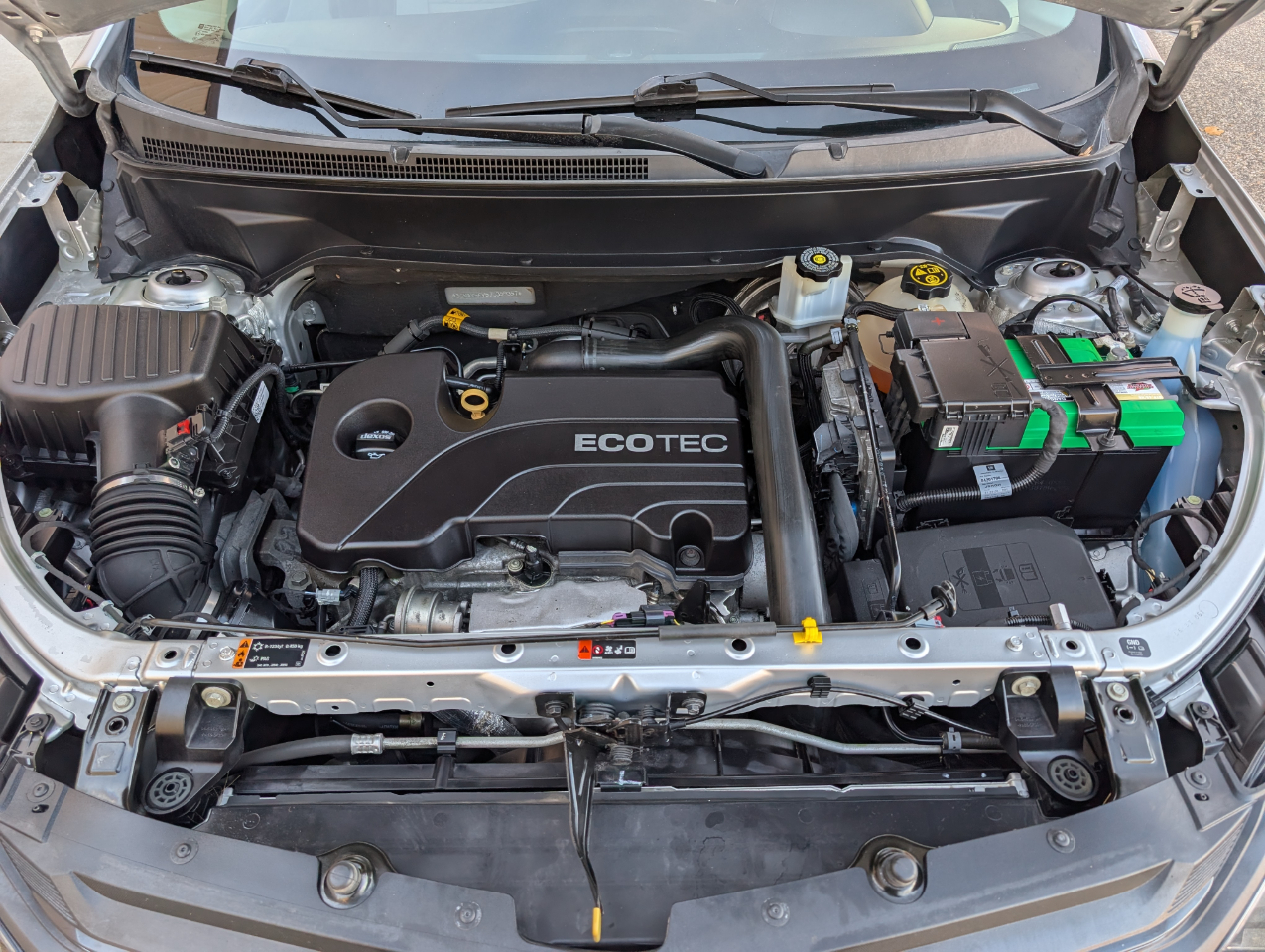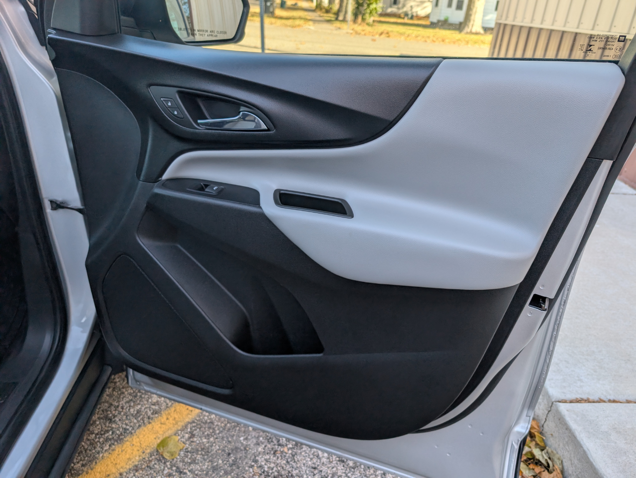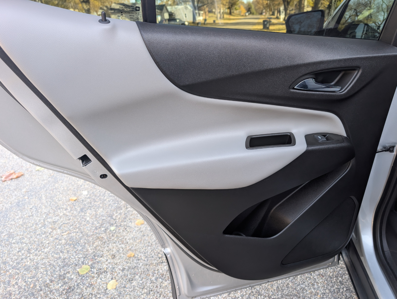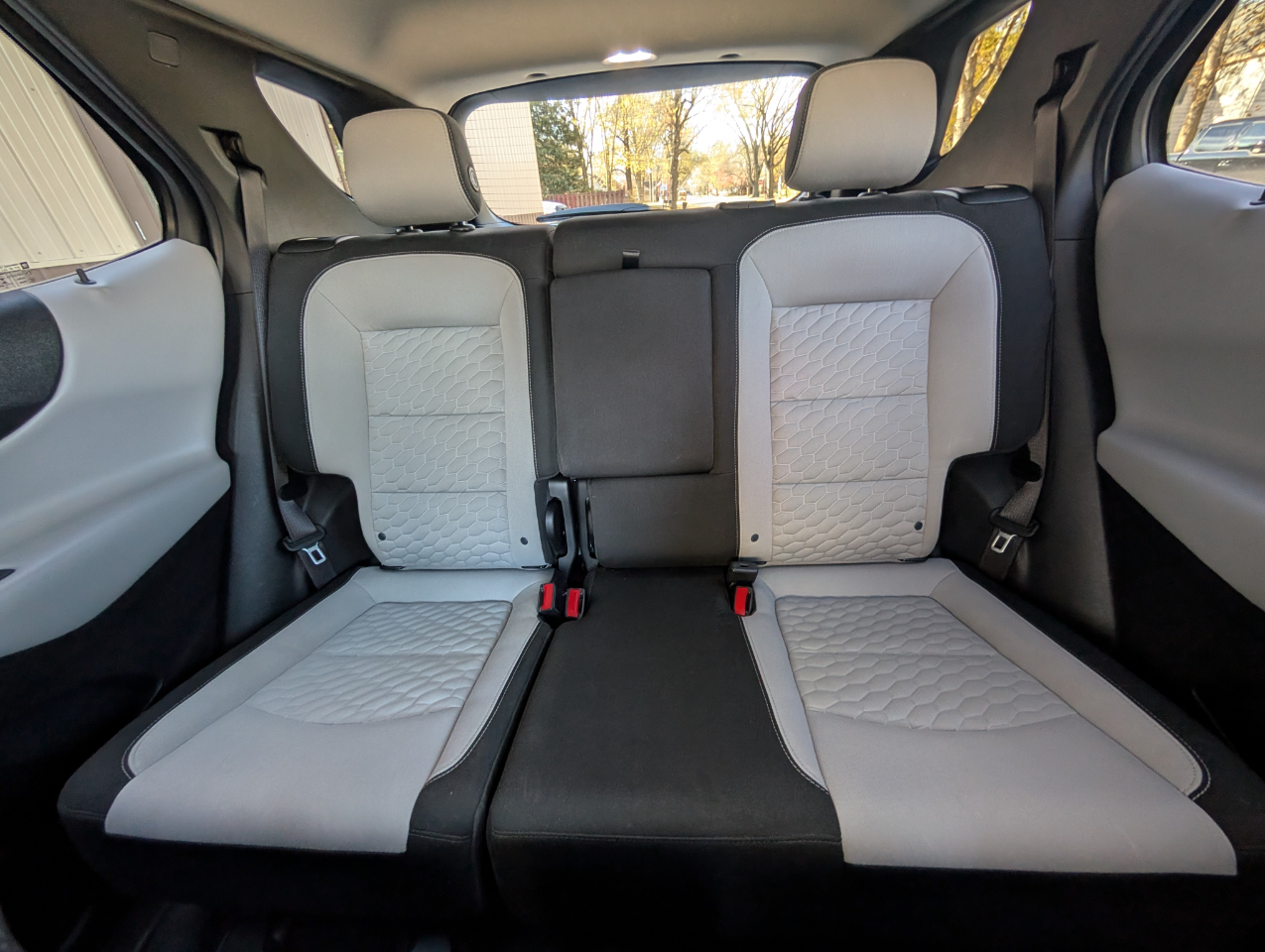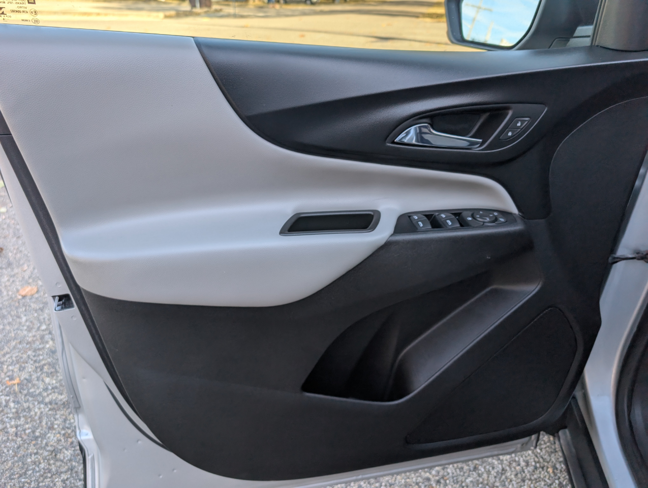 The 2018 Chevrolet Equinox LS is a compact SUV with a standard 1.5L turbocharged engine, six-speed automatic transmission, and front-wheel drive. Key features include a Chevrolet MyLink infotainment system with a 7-inch color touchscreen, Bluetooth, and Apple CarPlay/Android Auto compatibility. It offers seating for five, a backup camera, and a split-folding rear seat for cargo versatility.